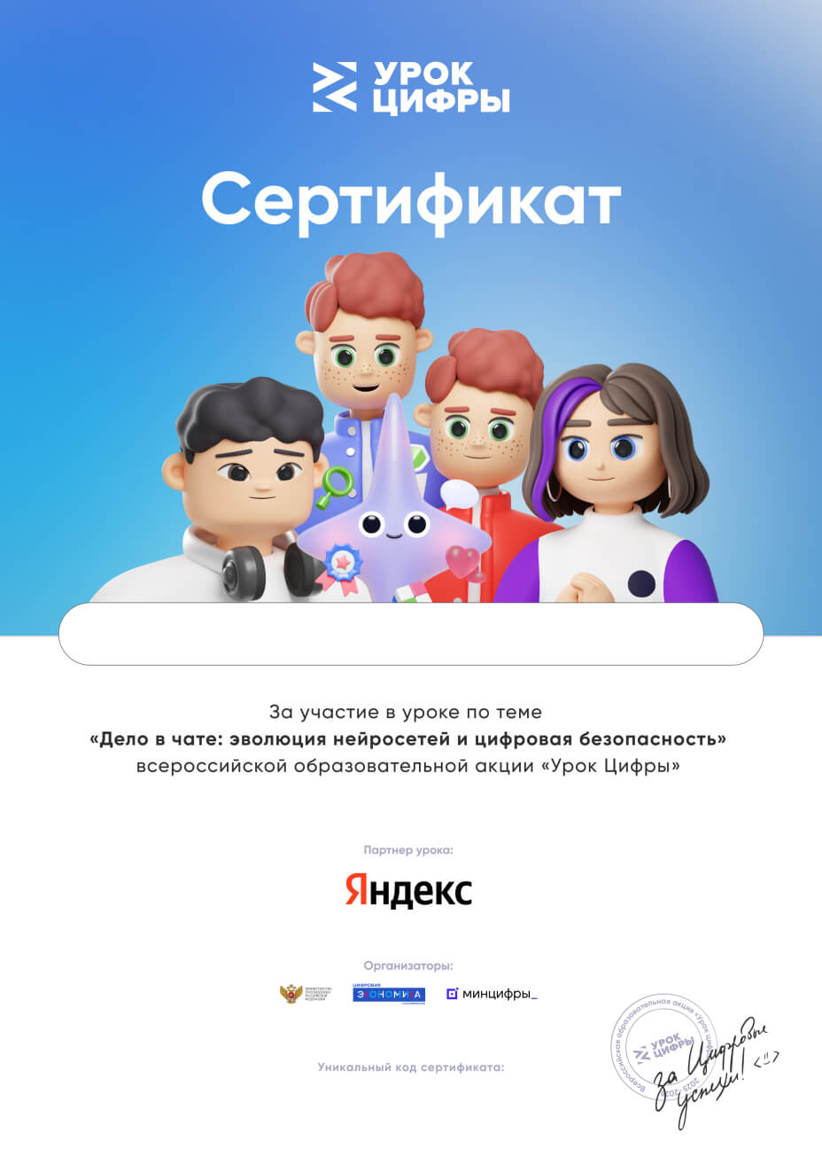 Помоги героям «Урока цифры» прокачать своего ИИ-ассистента и победить в турнире! Узнай, как устроены нейросети и как им удаётся понимать наши вопросы и давать точные и безопасные ответы.
